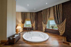 Sypialnia 1 - łóżko (1,8 m x 2,0 m), jacuzzi, Łazienka - prysznic, bidet.