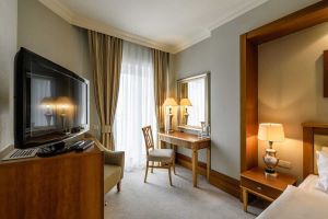 Wszystkie pokoje wyposażone są w: telewizję kablową, elektroniczny sejf, telefon, klimatyzację, minibar, suszarkę do włosów, szlafrok i kapcie, podłogę wyłożoną wykładziną (we wszystkich pokojach), połączoną łazienkę, balkon (z wyjątkiem apartamentów i apartamentów).