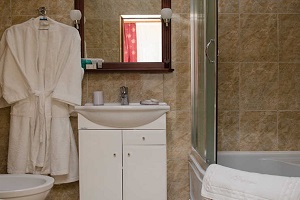 Все номера оснащены: спутниковым ТВ, кондиционером, электрочайником, феном, халатом и тапочками.
