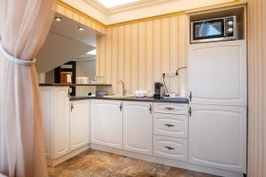 В номере телевизоры, сейф, мини-бар, электрочайник, кофемашина.